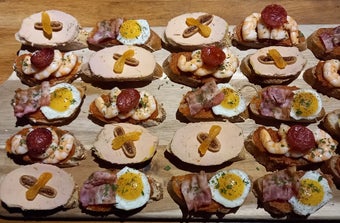 Nous proposons des tartines tapas gourmandes et variées ainsi que des mini burgers, mini wraps, mini bagels, verrines salées variées, verrines de légumes crus, cornets de jambon ibérique/charcuterie, cornets de saumon façon gravelax...